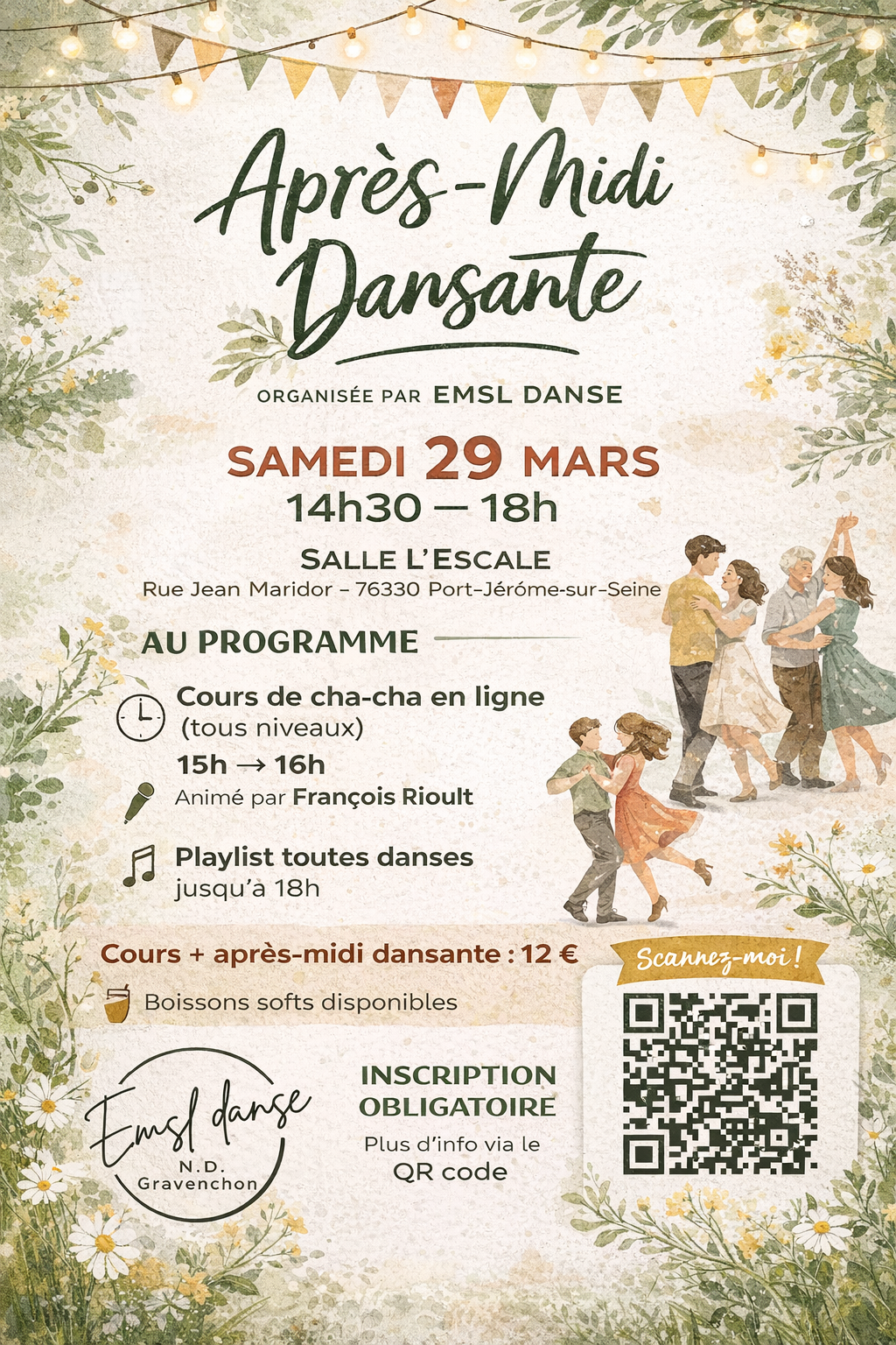 29/03 • Cours de Cha cha en ligne + Après midi dansante