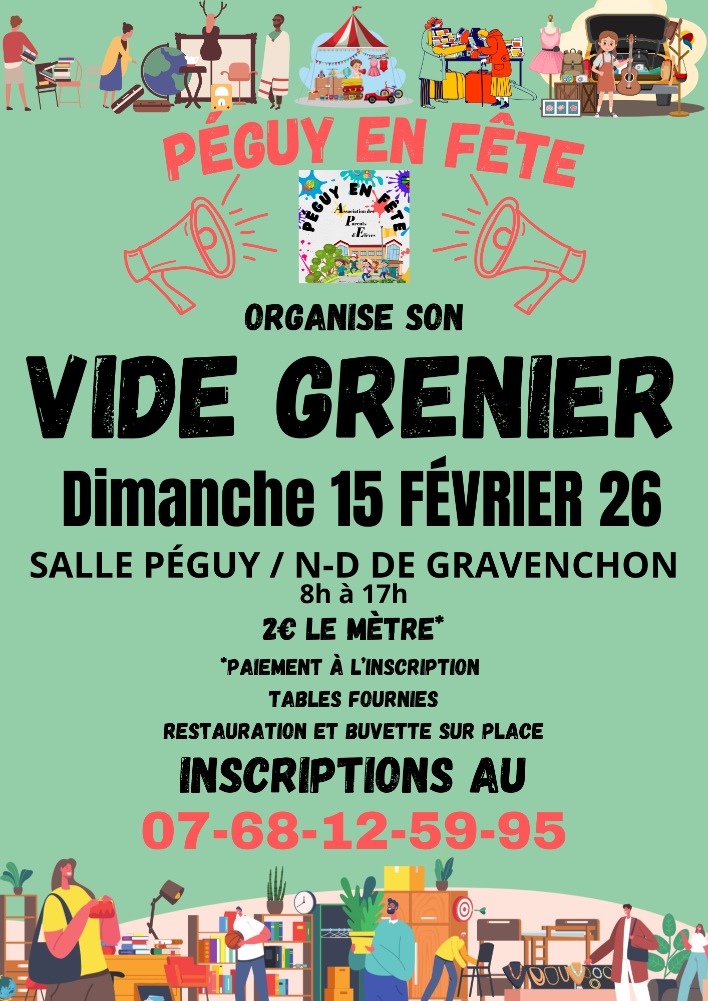 Salle Charles Péguy Avenue du château, Port-Jérôme-sur-Seine, FranceL’association Péguy en Fête vous donne rendez-vous le dimanche 15 février 2026 de 8h à 17h à la Salle Péguy de Notre-Dame-de-Gravenchon pour son grand Vide-Grenier. De nombreuses trouvailles vous attendent dans une ambiance conviviale, avec restauration et buvette disponibles sur place. Venez profiter d’une journée familiale et chaleureuse !