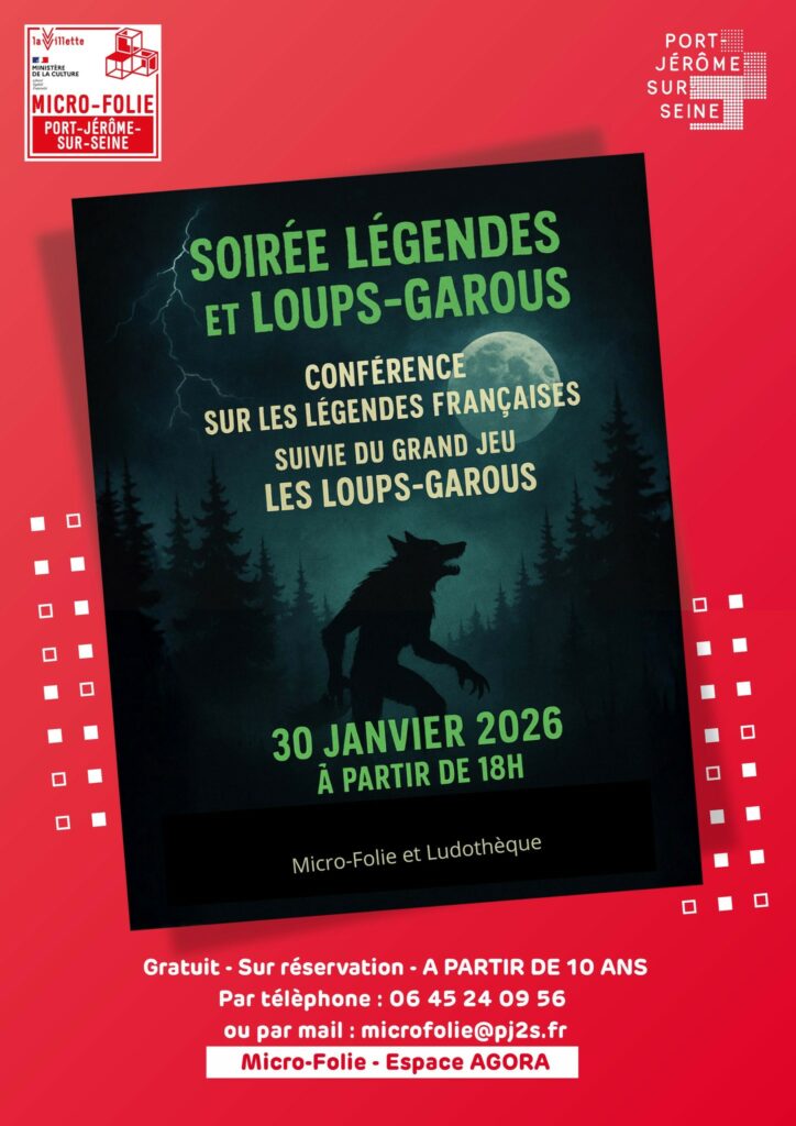 Le 30 janvier 2026 dès 18h, la Micro‑Folie et la Ludothèque vous invitent à un moment unique autour des légendes françaises et du grand jeu Les Loups‑Garous ! Une soirée idéale pour partager, apprendre, rire et jouer ensemble.