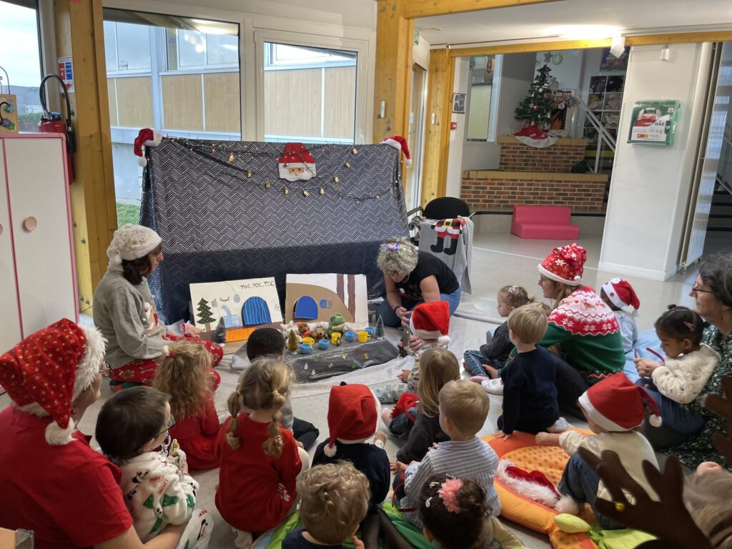 Hier, ces mélodies ont résonné dans la salle, guidant les enfants au fil d’une histoire racontée par l’équipe. Et lorsque les voix se sont élevées, un invité très attendu est apparu : le Père Noël en personne, venu partager sourires, chocolats… et même quelques cadeaux.