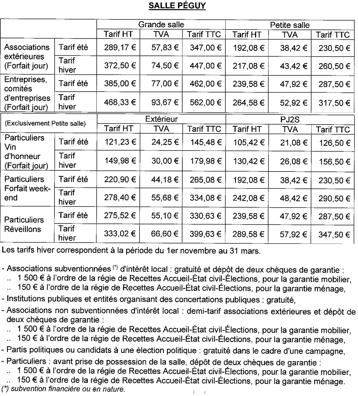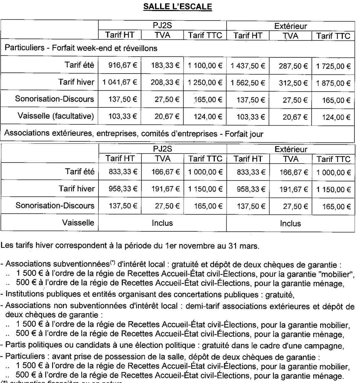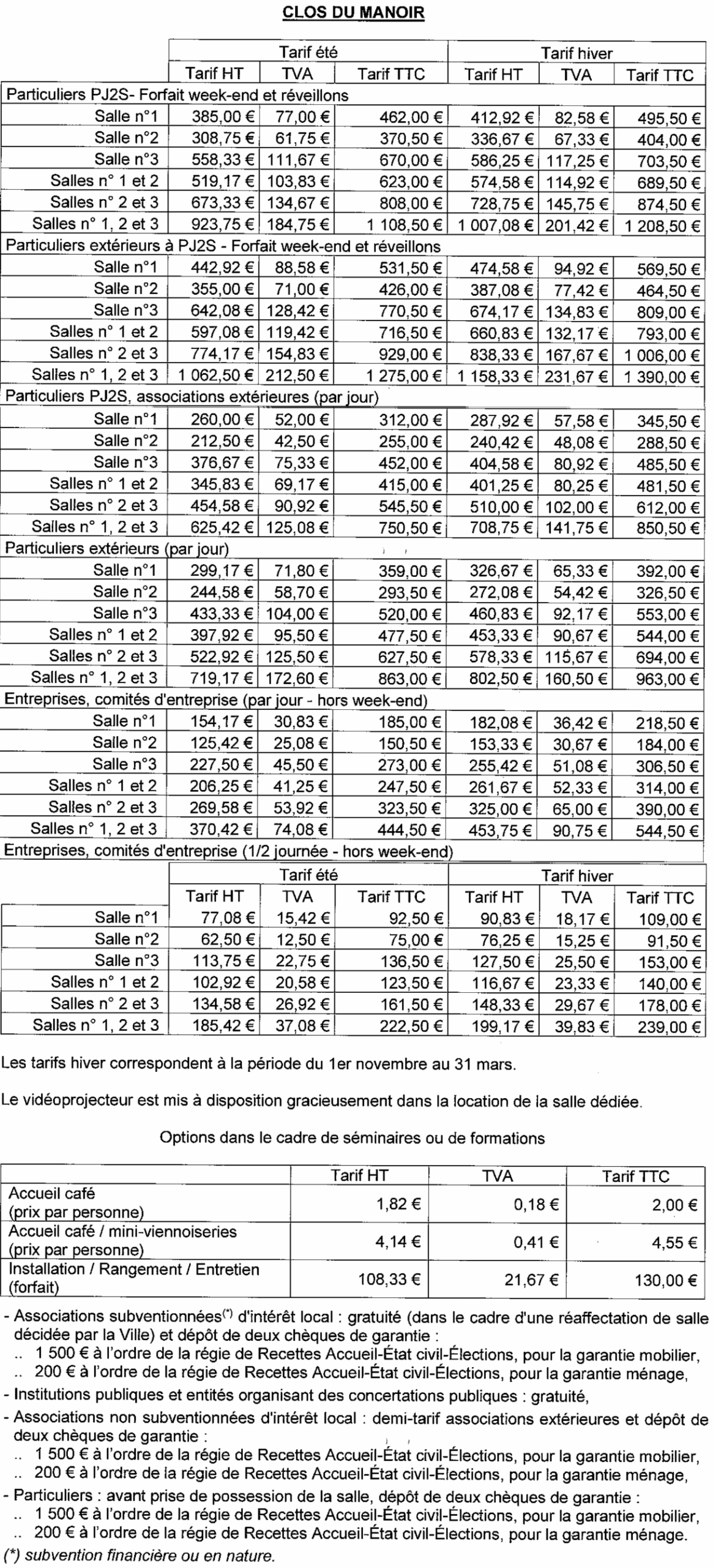 Chauffage en sus : 33€ pour une après-midi / 42€ pour 1 jour / 66€ pour 2 jour